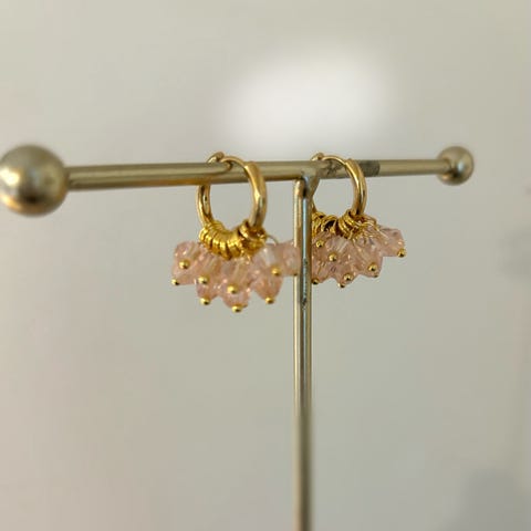 Vaaleanvihreät sirot rypäle / rypäs/ kristallikorvikset, pituus noin 2,5cm. Allergisoimaton kullattu rengas. Uudet.