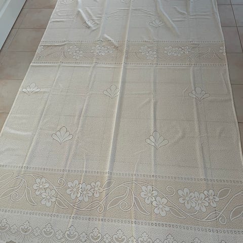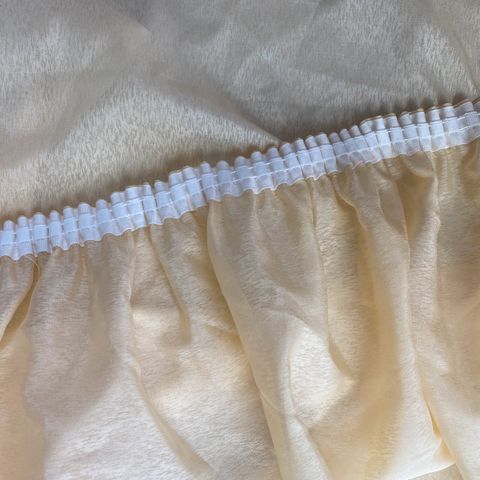 Kaunis, laadukas, vaalea, laskeutuva ja rypistymätön verho. Omaan ikkunaan liian iso. Kulkeutuu mm Loimaa,Aura,Lieto. Nouto ja postitus käy.