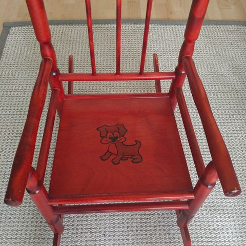 Myydään lähes 30 vuotta vanha puinen lastenkeinutuoli.