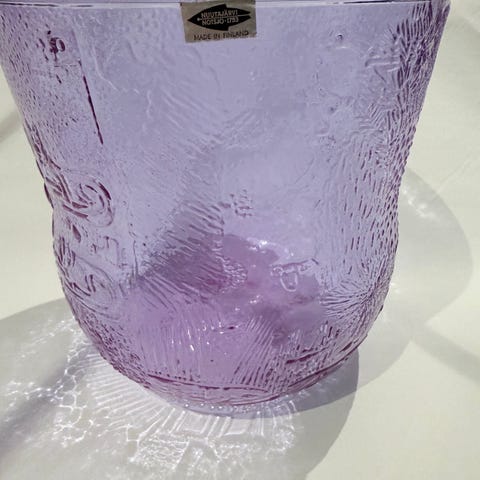 Kuvan Oiva Toikan suunnittelema jalallinen Fauna-sarjan malja, kork. 24,5cm ja halk. 13cm.