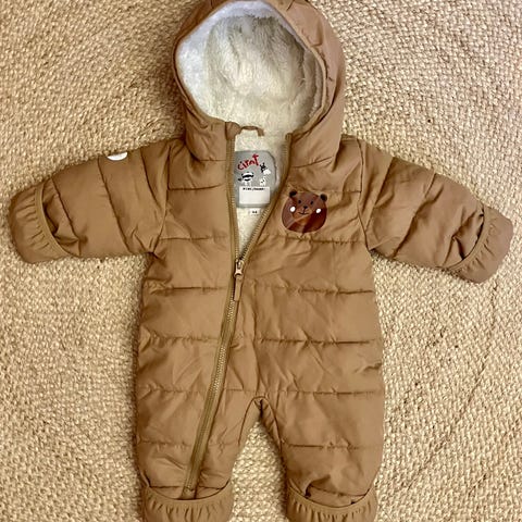 Myydään hyvässä kunnossa oleva käytetty vauvan toppahaalari. Koko 56 ja väri harmaanruskea. Käännettävät hihansuut ja irroitettava huppu.