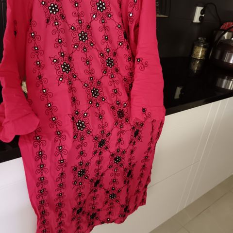Kerran käytetty vihreä ja violetti kaunis värikäs mekko tai tunika. Koko M. Rinnanympärys 108 cm. Nouto Linnanmaa tai postitus