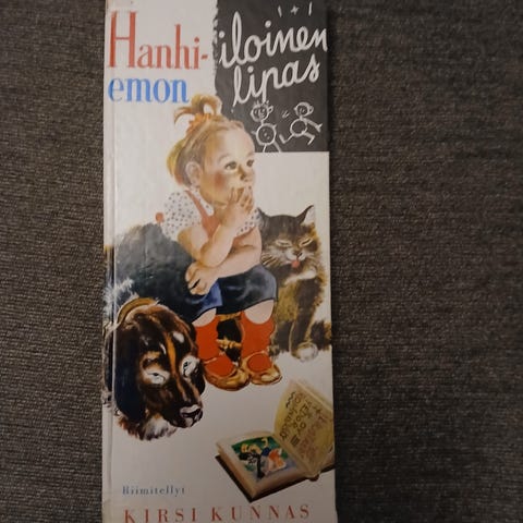 Myyn vanhan Hanhiemon iloinen lipas kirjani .Kohtuu hyvässä kunnossa ikäisekseen,hieman rispaantunut kannen ylälaidasta ja aivan ensimmäisen sivun repeämä joka ei vaikuta lukemiseen tai kirjan kuntoon muutoin. Kaikki sivut ehjät.