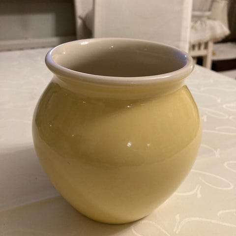 Pentikin keltainen munakuppi tai tuikkukuppi. Korkeus n. 9 cm, leveys n. 10 cm.