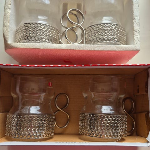 Laatikollinen kotimaista lasia, mm Iittalan tsaikkalaseja kolme kpl.