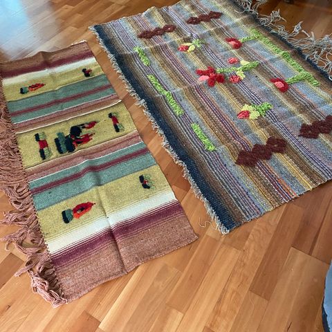Tästä, vanha, kaappiin jäänyt seinävaate. Upeat värit ja kunto moitteeton. Itsellä nyt kaappien tyhjennys menossa ja ei itsellä sopivaa seinäpaikkaa. Nouto Ylöjärveltä. Mitat 86x154 cm + hapsuista tulee lisää mittaa noin 13 cm. Hienoa suomalaista käsityötä,