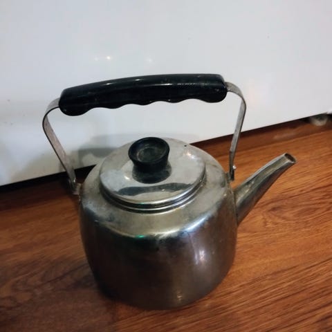 Exo vanha ajan patinoima tee/ kahvipannu, tilavuus 1,5 litraa. Koristeeksi, ei sovellu enää käytettäväksi,. esim. Lapsille virpomisen tai leikkimökkiin leikkeihin. Valmistettu metallista. . Kannen ja kahvan ansiosta helppo käyttää. Klassinen muotoilu. Mitat: kork. 20cm, ympärys: n.45cm. Ei eläimiä, savuton koti. Nouto Seinöjoki tai Nurmo, kulkeutuu tarvittaessa myös Vimpelin. Postin kulut lähetettäessä.