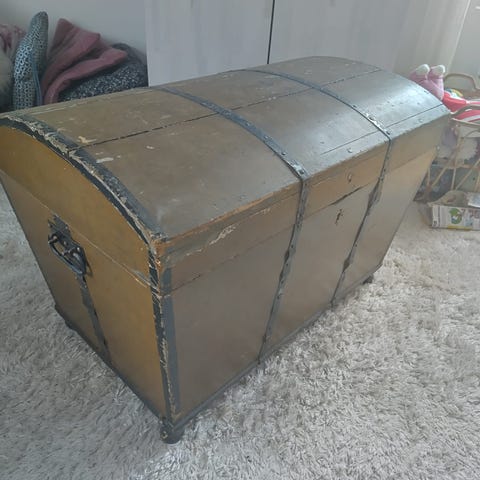 Vanha, elämää nähnyt, sympaattinen arkku, joka on tilaihme säilytykseen. Kun sisustuksesi kaipaa särmää ja tarinoita. Meillä tässä säilytettiin pyöräilylaukut, kauppakassit, reput ja reissukassit.