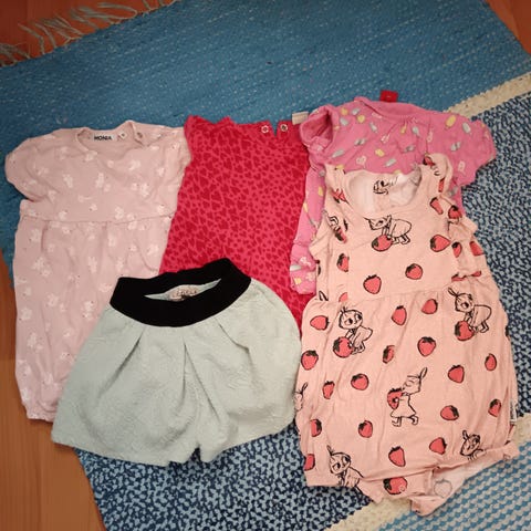 Myydään hyväkuntosia tytön vaateita bodyja, mekkoja, yöpukuja ja housuja. Vaateiden koot 80-86, kaikkia käytetty 80 kokosena.