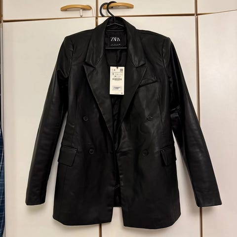 Musta tekonahkainen Zara bleiseri L