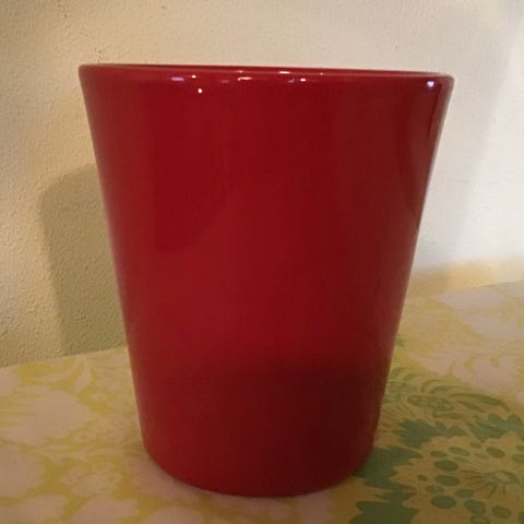 Korkeus 25 cm. Ruukun korkeus 10.5 cm ja sisähalkaisija ylhäällä 11 cm ja alhaalla n 10 cm