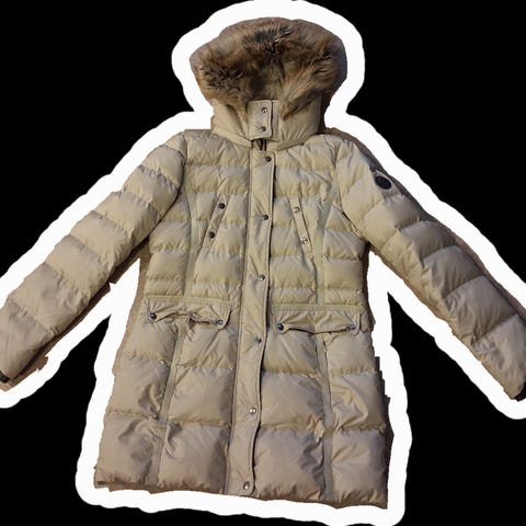 Laadukas naisten Tumman beige Marc o polo untuvatakki L. Neulos hihansuut, joissa hiukan kulumaa. Yleisilmeeltään siisti.