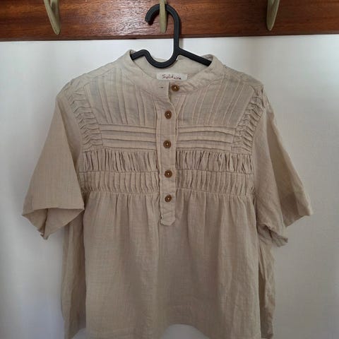 Kerran käytetty lyhyt t-paita (Pigalle by Only), jossa söpöjä pieniä oransseja kukkia. Kangas on joustavaa. Kokolapussa lukee L, mutta todellisuudessa sanoisin olevan pienehkö M. Olen itse kokoa M ja paita on minulle ihonmyötäinen. Malli on lyhyt.