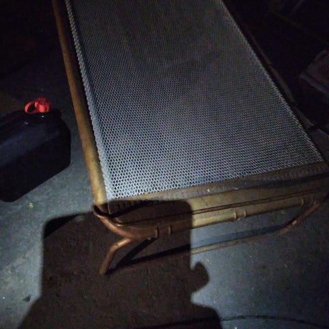 Täysin kunnossa oleva heteka patjoineen. Meillä ei enää tarvetta.