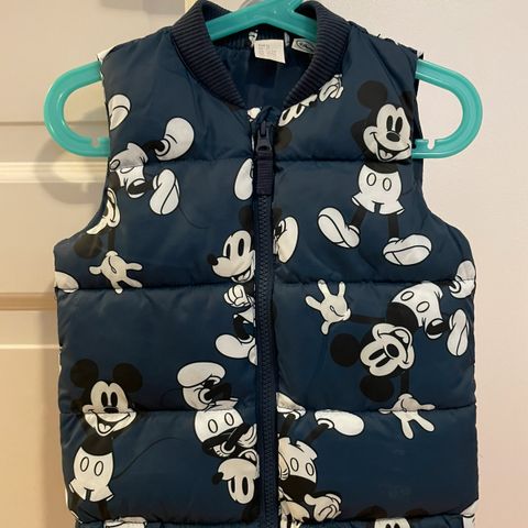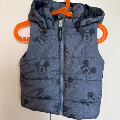 Myydään vähän käytetty H&M Mikki-toppaliivi. Hauska vuori. Hupussa korvat. Huppu irrotettavissa tarroilla. Koko 92.