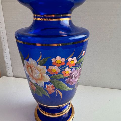Lasinen Bohemia maljakko 22cm x 7cm.