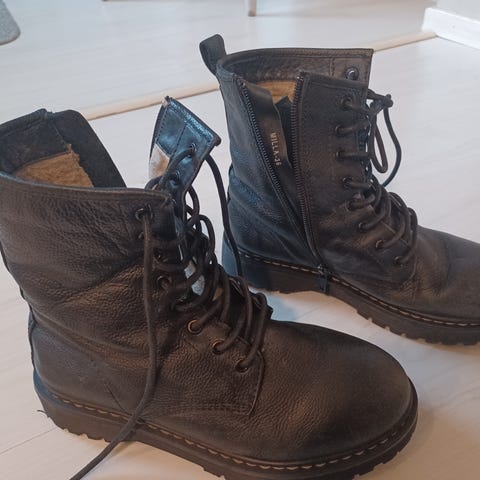 Siistit, aitoa nahkaa olevat mustat nilkkurit tytön käytöstä. Koko 36. Ohut villavuori sisällä, joten menee pikkupakkasillakin.