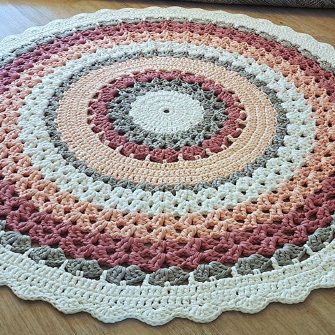 Virkattu UUSI pyöreä matto 130cm. Konepesu!
