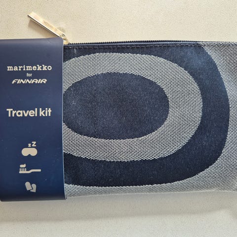 Marimekon valmistama Travel kit, Finnairin business luokkaan.