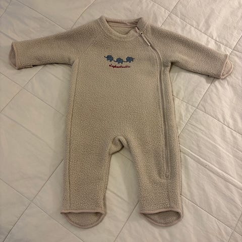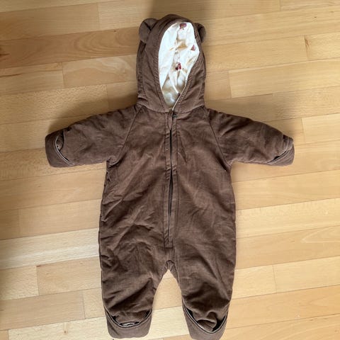Meille uutena ostettu Konges Slojd suloinen teddykarhu haalari. Haalari on pörröistä kangasta ja siinä on herkkä sinikukkainen vuori, pääntiellä kolme nepparia ja sivulla vetoketju. Ihana haalari syksyisiin päiviin.
