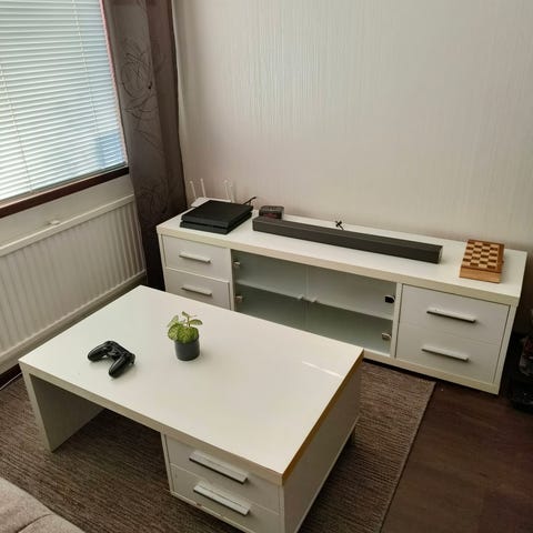 Myydään tv-taso, jäljet pöydässä oli jo ostettaessa. Massiivipuusta valmistettu, kestävä ja painava tv-taso/sohvapöytä. Ei ole käyttöä muuton myötä. Jäljet helppo peittää petsaamalla.