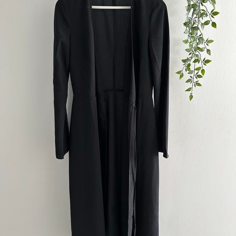 Harmaameleerattu takki, edessä taskut ja kiinnitys kahdella napilla, hihoissa resorit. Pinta jonkin verran nukkaantunut, mutta materiaali ollut jo ostaessa hieman ”nyppyistä”, ei tasapintaista. Hieman reilua kokoa, sopinee XS-S. Merkki Topshop