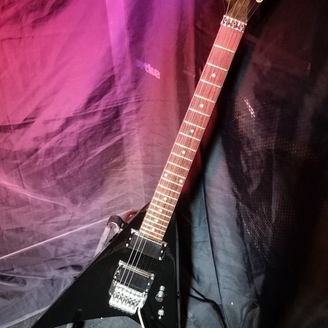 Näyttävä ja ennen kaikkea voimakas soundinen mahonkirunkoinen ja -kaulainen sähkökitara.