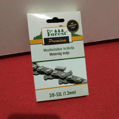 Muutaman kerran käytetty moottorisahan terälaipansuoja / teräketjunsuoja. Pituus 14" eli 35cm tai lyhennettävissä 12" eli 30cm.