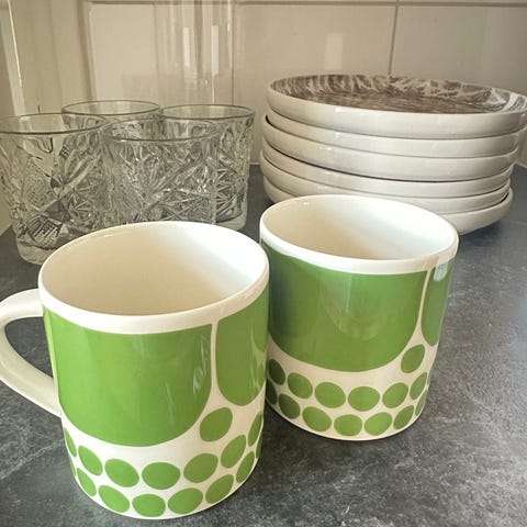 Arabian tummanvihreät kahvikupit. 4 kuppia ja 6 asettia.