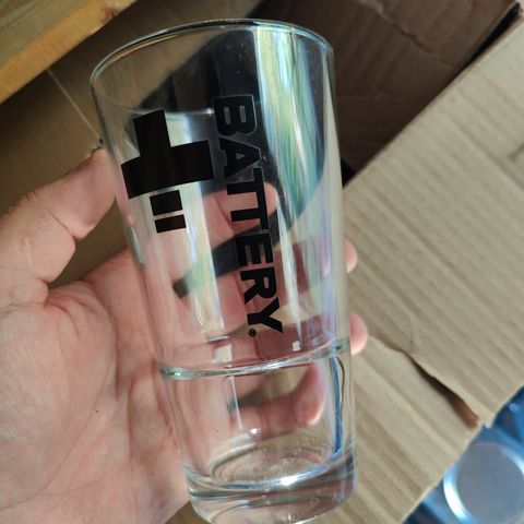 Myynnissä tämmöinen Battery-mainos pleksilasilla ja metallilla.