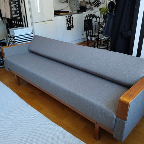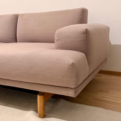 Virolaisen Oot-Oot Studion kaunislinjainen, 50-lukuvaikutteinen Cosmo-sohva vanhan roosan värisellä kestävällä kankaalla. Hieman kissan kynsimisen aiheuttamaa nyppyyntymistä vasemman käsinojan lähistöllä, mutta yleisilme siisti. Ollaan muuttamassa 2.1.2026 haluamme myydä sohvan ennen sitä. Laatusohvan saa nyt hyvin edukkaasti.
