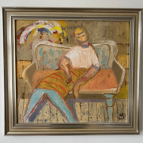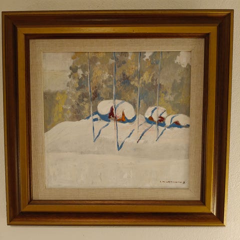 Suomalaisen modernin taiteilijan Ahti Lavosen teos. Koko kehyksineen 52x58 cm. Öljyväri siististi kehystettynä.