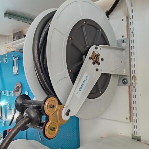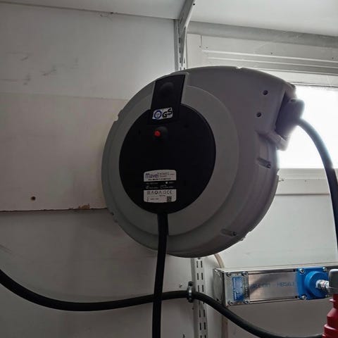 Soveltuu myös ulkokäyttöön. Alumiinikuori ja öljynkestävä kumikaapeli. Valmistaja Zeca Italy. Malli 6154 PRL. Huom! IP65 luokitus (kestää roiskeita koko kelan alueelta) Max.teho 2 kw sisäänkelattuna ja 3 kw kun kaapeli ulkona