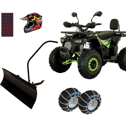Mönkijä toimitetaan tehdaspaketissa, jolloin mönkijään täytyy itse kiinnittää renkaat, ohjaustanko ja telineet. Voit myös tilata verkkokaupastamme helposti kasauspalvelun, jolloin mönkijä toimitetaan ajovalmiina.