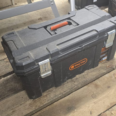 Myydään kuvan tayg työkalupakki, mukaan tuo sisällä oleva läpinäkyvä säilytyslokero esim ruuveille. On jotain käytönjälkeä mutta erinomaisesti ajaa asiansa