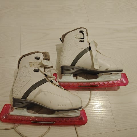 erittäin mukavat lämpövuorelliset luistimet. Vähällä käytöllä olleet "ensimmäiseltä omistajalta", mutta toisesta luistimesta on mysteerisesti kadonnut pohjallinen, joten sellaiset joutunee marketista investoimaan lisäksi, ellen löydä puuttuvaa.