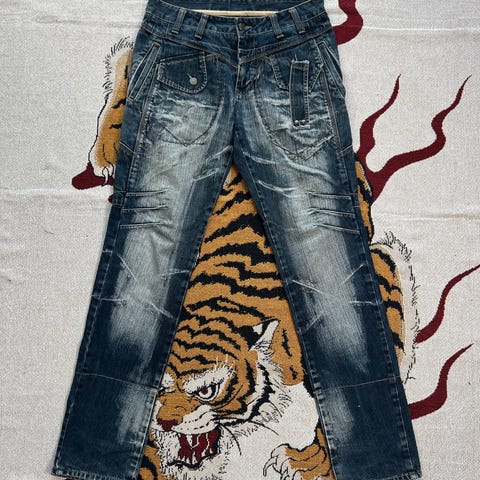 Japanista ostetut Okayama Quality - Tabloid News merkkiset erittäin laadukkaat miesten farkut. Lähes käyttämättömät. Mitoitus hivenen tiukempi kuin Euroopassa.