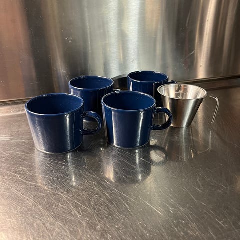 Arabia Teema kahvikupit sininen. Kestävää materiaalia, sopivat erinomaisesti päivittäiseen käyttöön tai juhlatilaisuuksiin. Klassinen muotoilu ja syvä sininen väri tekevät näistä kupeista tyylikkään lisän keittiöön. Kahta kokoa; kaksi korkeampaa, neljä matalampaa. 5 euroa kappale. Kaikki kuusi kuppia 25 euroa. Nouto Helsingin keskustasta tai postitus.