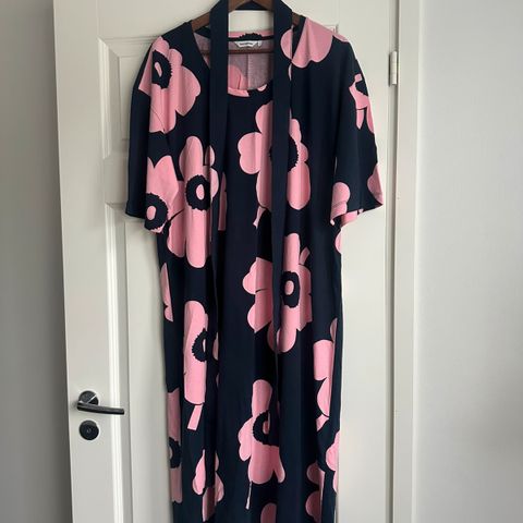 Marimekko johanas juhlaunikko koko L. Pituus 118cm ja ka-ka 60cm, reilu koko. 100% puuvillaa. Mukaan tulee vyö, voidaan pitää myös ilman. Värit musta-valkoinen. 1-2 kertaa pidetty, uudenveroinen kunto!