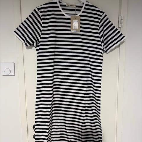 Myydään kaunis sinivalkoraitainen Marimekko Hetta yöpaita/maksimekko. Kuin uusi. Ei postitusta.