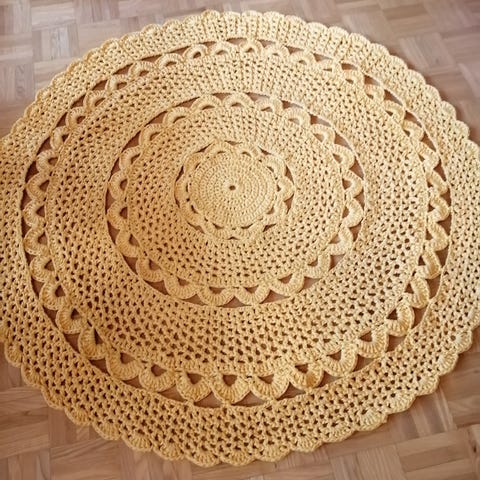 Keltaisempi kuin kuvassa - aurinkoinen matto trikoosta, 115cm. Mmm