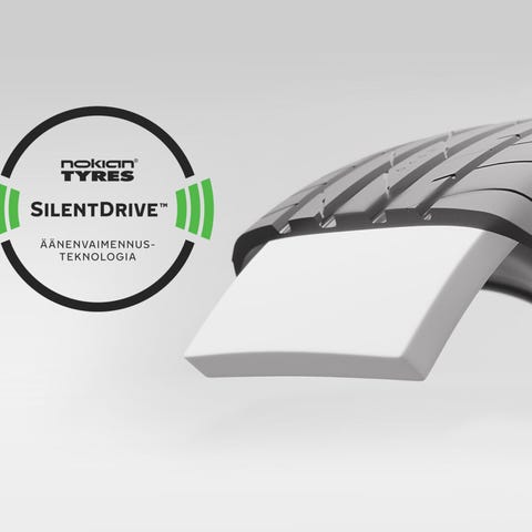 Hyväkuntoinen käytetty sarja Hankookin sähköautoon sopivia renkaita.