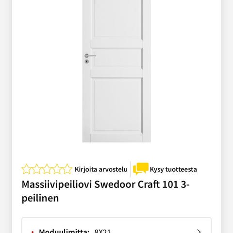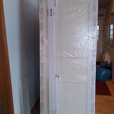 Myydään käyttämätön valkoinen massiivipuinen peiliovi sisäkäyttöön. Väri valkoinen. Koko 85 cm X 205 cm.