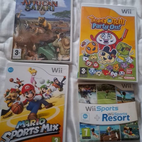 Nintendo wii kolmen pelin kanssa, feikkiaseen ja tasapainolaudan kanssa