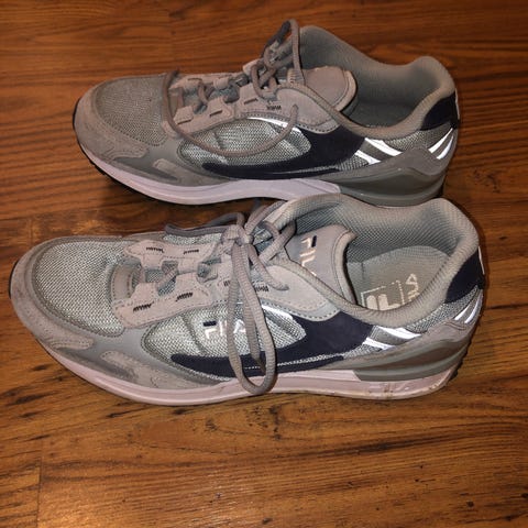 Kaapin siivousta. Löytyi Uudet Fila miesten kengät / lenkkarit. Koko 44. Laput irrotettu ja laitettu kaappiin. Unohtui ja nyt nuorisolle koko ohi. Matalampi etuosa mallissa ei silti matalin. Makuasia. Kuminauhalipalla venyy jalalle. Kapeahko lesti kuten Filalla usein..