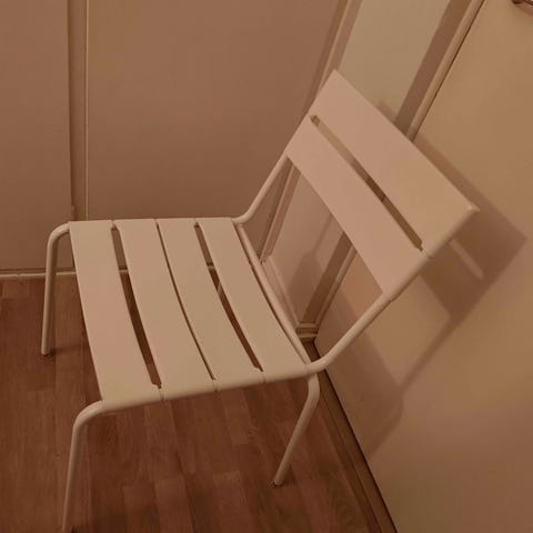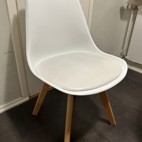 Jykevä,hyvä istua. Toisessa tuolissa maali lähtenyt irti,liima on jotenkin vahingossa päässyt tuoliin.