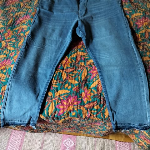 Myyn pari kertaa käytetyt, beiget, stretch farkut. Lyhyt malli. Koko: 42