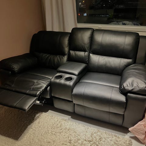 Sohva on showroom-kappale. Oikeassa istuimessa painaumia ja tarjottimissa naarmuja. Yleisvaikutelma erittäin hyvä.