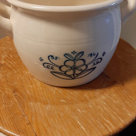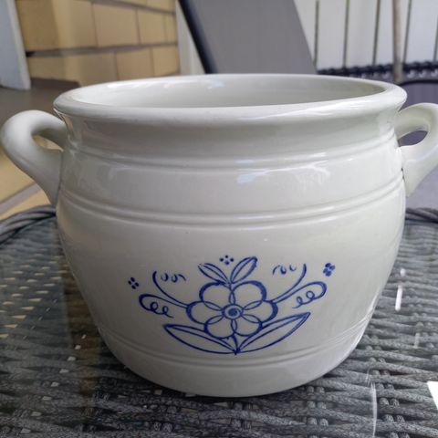 Vanha voipytty. ( Arabia ) Ehjä. Siirtojälkiä. Korvasta korvaan leveys 22.5 cm. korkeus 13 cm. Suuaukko halkaisija 16 cm.
