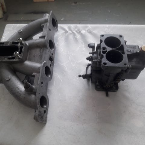 Tee-se-itse imusarjan laipat tuplille. Laipat on lähtöisin Alfa Romeosta jossa on vakiona 40mm tupla Weber DCOE, Dellorto DHLA tai Solex DDH tai ADDHE. Kaikissa on sama kiinnitys. Kun laipasta siivoaa kumin rippeet pois jää käteen rautalevy jossa on pinnapultit paikallaan. Levyssä on helpon näköinen kolo putken liittämiseen ja hitsaamiseen. Kanava on 40mm, mutta jako on sama 45 koossakin. Tarjolla on 4 laippaa joissa jokaisessa on kumin jäämät jäljellä. 4 laippaa näkyy ensimmäisissä kuvissa. Ei muttereita mukana. Kierre vaikuttaisi olevan 8mm hienokierre. Viimeisissä kuvissa valmiiksi kumeista siivottu laippa vain näyttää mitä on odotettavissa kumin poiston jälkeen eikä tule mukana. 4 laippaa kaasareiden puolelle, eli kahden vaakaimun laipat 4-koneeseen yhteensä 20 euroa. Nouto Kaarinasta tai postitus toridiilinä tai ilman.